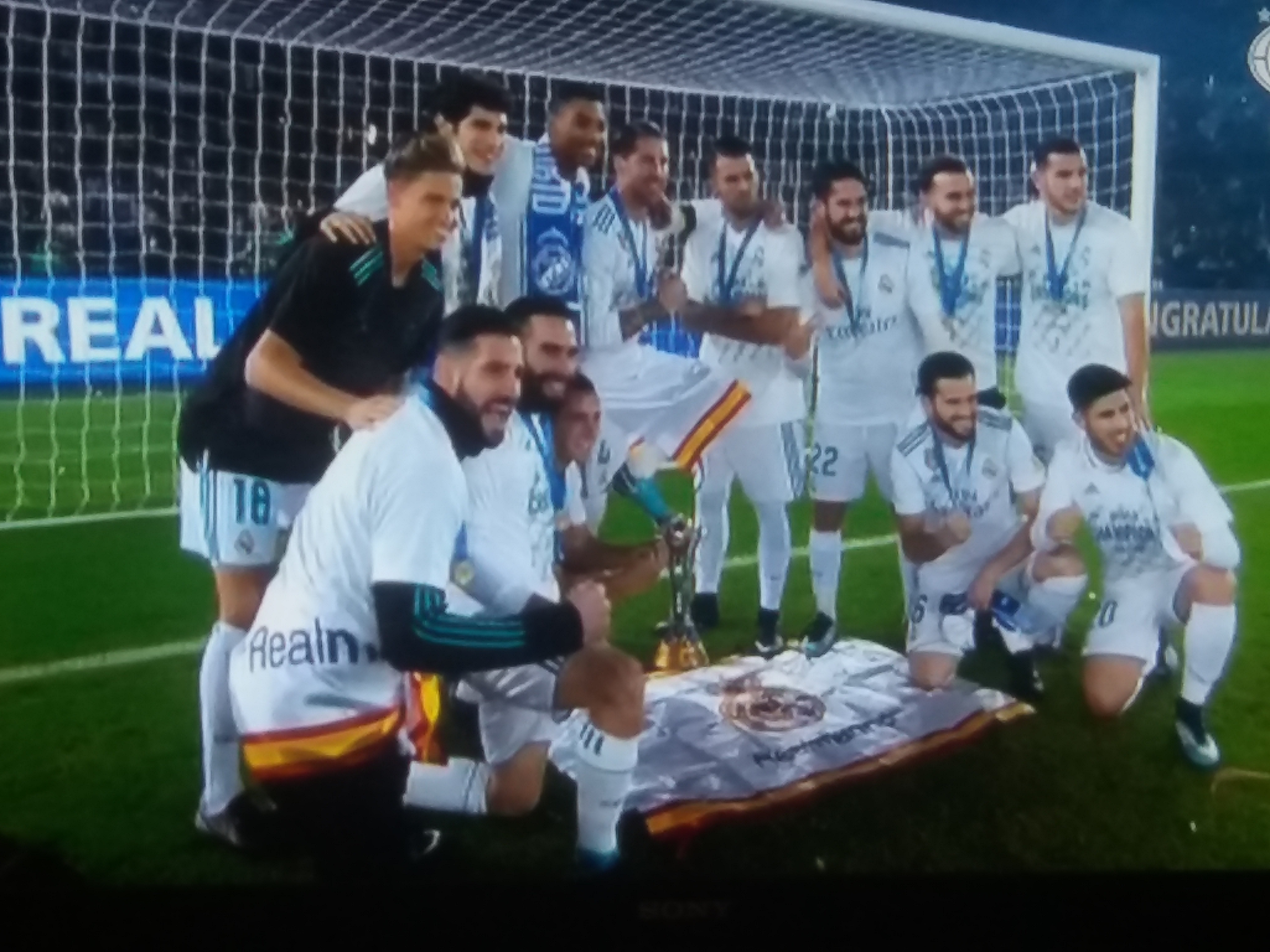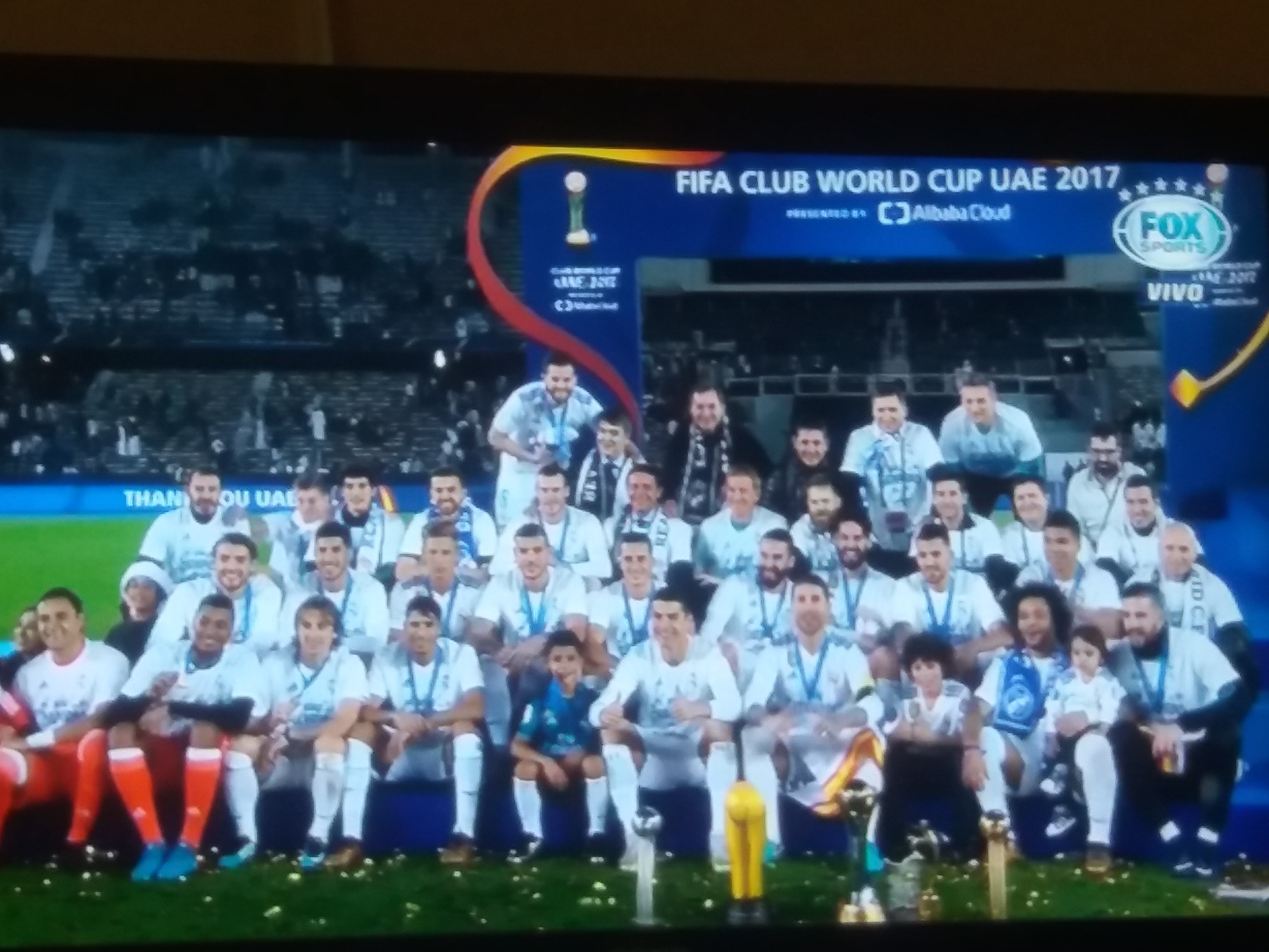 E Campeão, torcedores do Real solta o Grito de E campeão e conquista o mundo pela Sexta vez. Real Madrid domina Grêmio e é hexa mundial com gol de Cristiano Ronaldo. Neste sábado (16), liderado por Cristiano Ronaldo, o Real Madrid alcançou o sexto título mundial ao vencer os grêmio por 1×0. O Grêmio conquistou a América, legitimamente sonhou com mais e lutou por isso, mas parou diante de um rival poderoso do futebol mundial. Sem Arthur, lesionado, e com Luan muito abaixo de seu nível habitual, o Grêmio de Renato Portaluppi não ameaçou ofensivamente e caiu contra um rival que foi soberano em campo. Em 90 minutos, o Real sequer permitiu uma finalização no gol defendido por Navas, apesar de todos os esforços da equipe brasileira. Tricampeões continentais, os gremistas seguem com um título mundial no currículo, conquistado graças aos dois gols do mesmo Renato sobre o Hamburgo, em 1983. O Real Madrid amplia sua interminável galeria de conquistas com seis títulos. mundiais, sendo três no formato antigo (1960, 98 e 2002) e ainda três no atual formato do Mundiais de Clubes da Fifa (2014, 16 e 17. Ficha Tecnica: