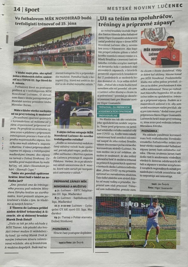 O jogador guanambiense de 22 anos é destaque no principal jornal da Eslováquia. Higor Guanambi, continua fazendo história na equipe do Novohrad Lucenec da Eslováquia.O craque guanambiense filho de(Neguinho) um dos maiores jogadores da cidade de Guanambi, foi destaque na temporada de 2019 na equipe Lucenec, sendo uma das peças chave no ataque da equipe.